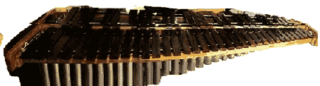 When I first studied for my Bachelor of Music at Adelaide University, I became absolutely fascinated with marimbas. I had only a small amount to do with them before, as my musical training through high school had mainly concentrated on timpani, snare drum, drum kit etc. The keyboard percussion instruments never featured prominently and I was not taught how to use four mallets. When I first started learning from James Bailey at Adelaide University, a whole new world seemed to open up before me. I got some help from my father, and purchased a 4 and 1/6 octave marimba from Mr. Bailey, who has been building instruments for quite a number of years now, that are easily equal to any on the retail market. It is this instrument (a very badly edited photo) that can be seen to the left.